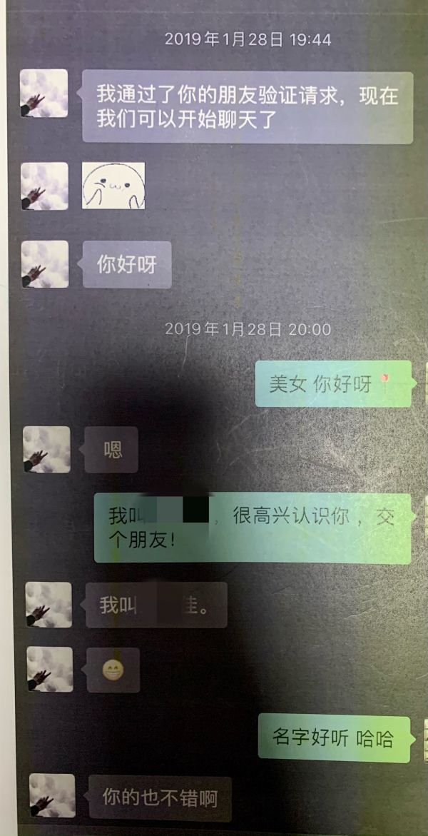 沈强拿出手机,向民警展示自己与“网聊女友”佳佳近两年的聊天记录,二人从去年1月在交友网站添加好友后,他很快被对方迷住。每天只要有空,沈强就泡在微信上与“25岁、武汉出生、上海工作”的佳佳网聊。他每天不停翻阅佳佳的朋友圈,对佳佳嘘寒问暖,很快佳佳也在微信中委婉表示愿意与他交往。