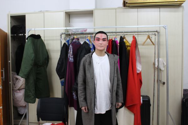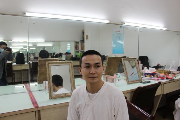 12月5日下午,余维刚演出结束还未卸妆。 记者万建辉 摄