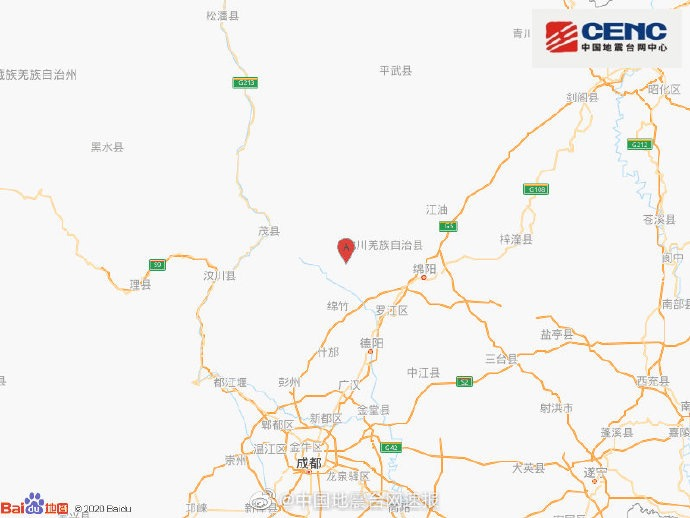中国地震台网正式测定:12月8日16时49分在四川德阳市绵竹市(北纬31.55度,东经104.14度)发生3.4级地震,震源深度8千米。