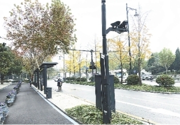 7日下午,记者前往沿江大道探访,从长江二桥附近的黄浦门至晴川桥,沿路6.5公里,只见道路中间的交通护栏,路边的LED路灯、公交站牌,头顶的交通标示杆,甚至是摄像头外壳和垃圾桶等市政设施都被统一喷成了黑灰色,与周边环境融为一体。