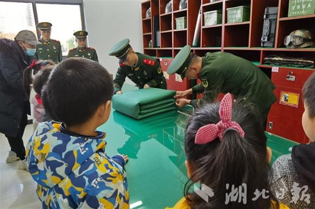 中队官兵演练紧急集合、整理内务叠被子等,让小朋友们大开眼界。官兵们手把手教孩子们叠被子。活动结束时,小朋友们表示,锻炼了动手能力,收获多多。