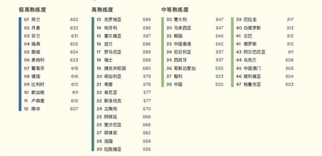 在各地成绩中,荷兰(652分)、丹麦(632分)和芬兰(631分)位居全球前三。亚洲的新加坡、非洲的南非、拉丁美洲的阿根廷和中东地区的伊朗则在各自区域中位居领先。