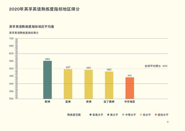 从全球范围来看,欧洲以550分的高水平成绩遥遥领先,亚洲以497分位居第二,非洲(492分)、拉丁美洲(480分)和中东地区(441分)则排名居后。