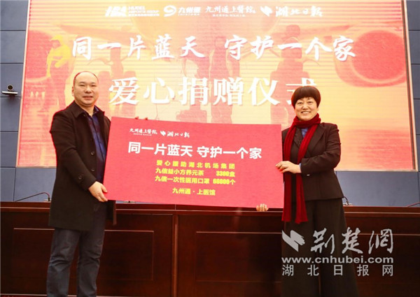 荆楚网客户端—荆楚网消息(通讯员 周园)12月11日,九州通上医馆联合湖北日报在湖北机场集团举办爱心捐赠仪式,捐赠价值近50万元的防疫物资,用实际行动助力机场疫情防控工作。