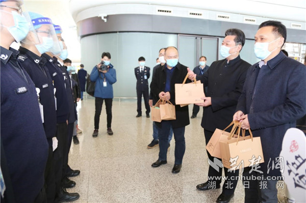 湖北机场集团、九州通医药集团相关负责人在机场一线进行慰问。通讯员供图