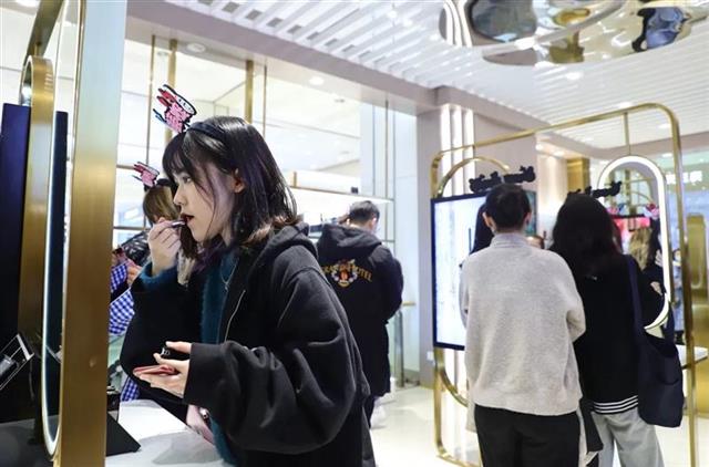 昨晚,在武汉银泰创意城,记者看到,这是一家60平方米左右的门店,店内放置了4块电子屏和美妆产品试用陈列柜。