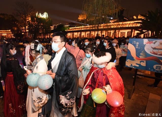 “原来汉服这么好看,尤其是整个园区游客换装之后,立马就感觉穿越了,我也忍不住在现场租了一套。”正在排队等候入场的简女士说道。据了解,古风夜游季期间,游客身着汉服前来体验可享受特价优惠,同时园区入口也提供汉服租赁服务,方便游客行浸式体验游园会的各个互动环节。