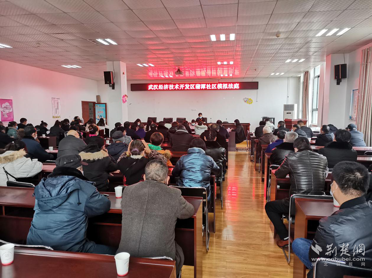 荆楚网客户端—荆楚网消息(通讯员程思、杨慕曦)12月10日,武汉军山街蒲潭社区邀请专业律师事务所的律师团队走进社区,为居民开展了一场主题为“模拟法庭进社区”的普法活动,让大家“身临其境”接受法律教育,近距离体验庭审过程。