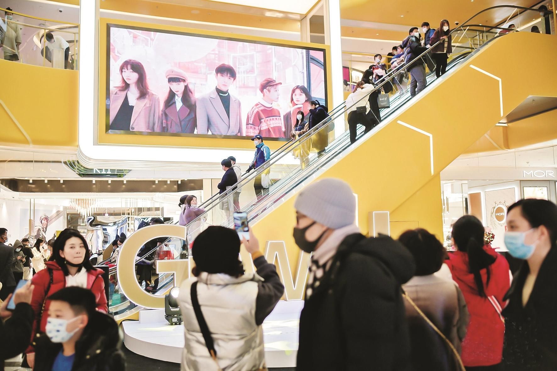 武汉K11黄色中庭吸引市民拍照打卡