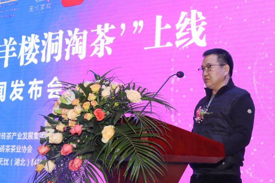 会上,赤壁青砖茶产业发展集团有限公司总经理、赤壁青砖茶茶业协会会长、羊楼洞茶业股份有限公司董事长 刘建军在致辞中提出“期待赤壁青砖茶‘羊楼洞·淘茶’平台以市场为导向,以科技为支撑,以诚信运营为准则,强化品牌思维,提升市场竞争力,抢抓后疫情时代扩消费、拉内需机遇,积极推动赤壁青砖茶产业健康可持续发展,为做大做强青砖茶产业作出贡献。”