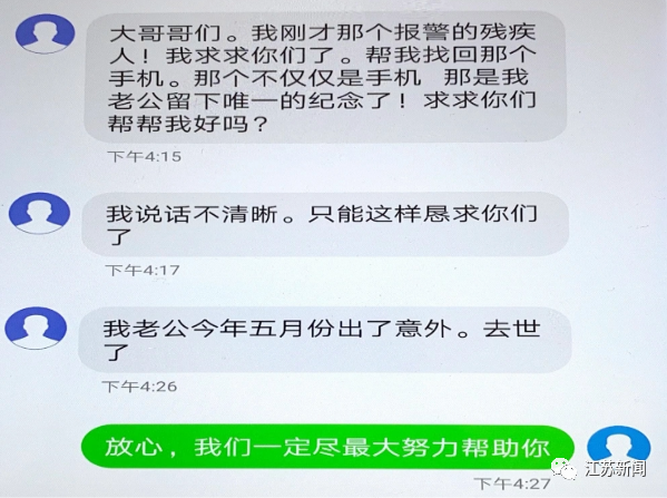 “倪女士的丈夫今年5月份因为意外去世,所以她发短信求我们无论如何一定要帮她把这部手机给找回来。我就下定决心,一定要把这个人给抓到。”宿豫公安局陆集派出所副所长周新杰说。