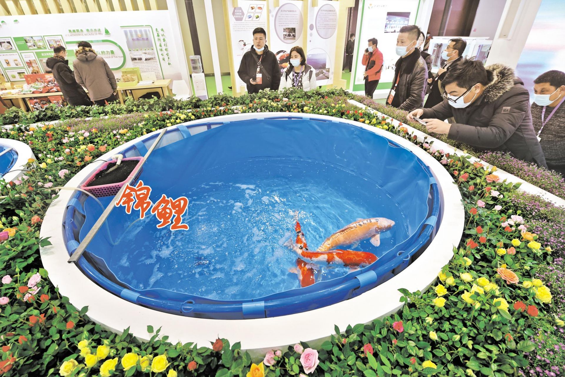 昨日,第17届中国武汉农业博览会在光谷开幕,省内外700余家企业的万种特色农产品参展。图为巨型锦鲤在展会上亮相。 楚天都市报记者李溪摄