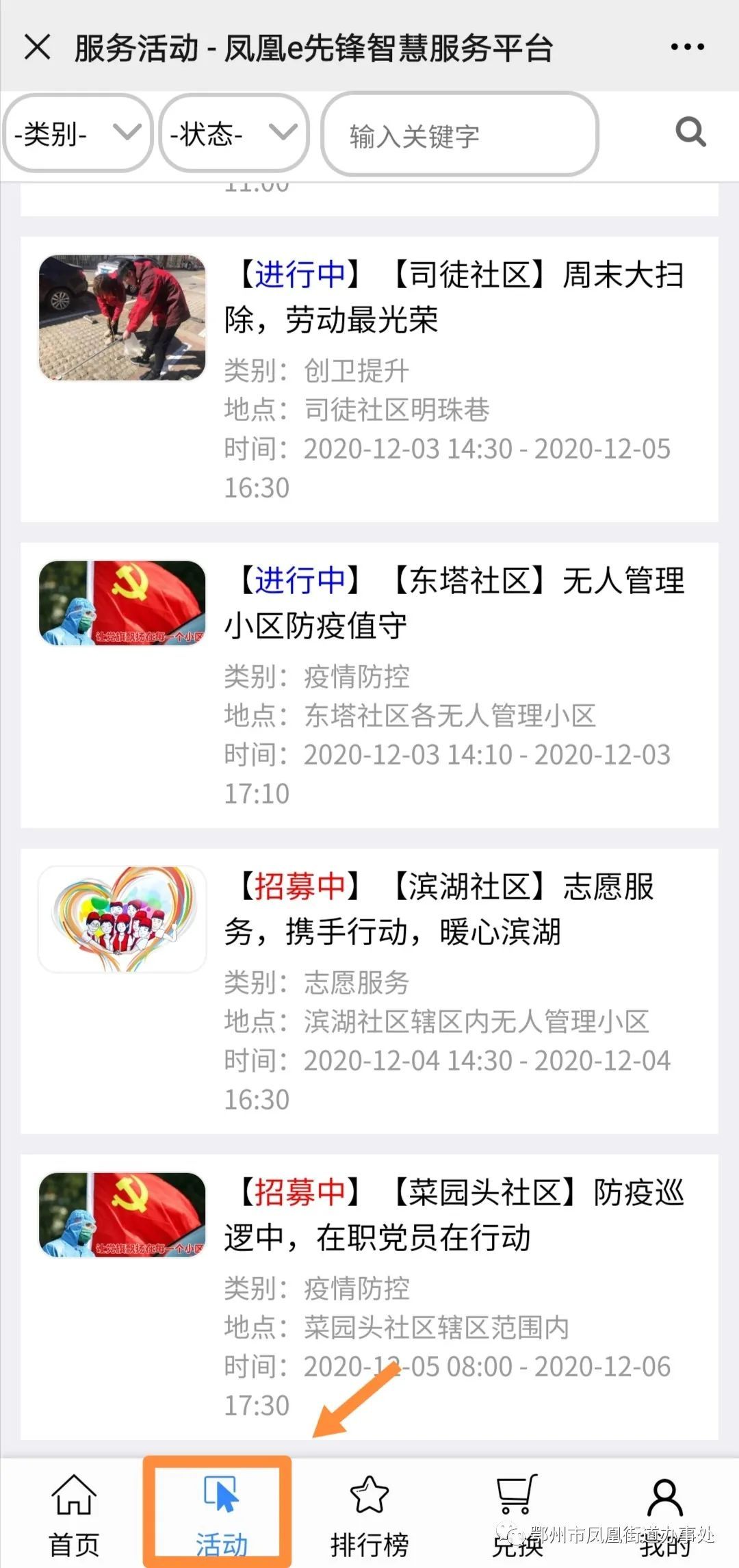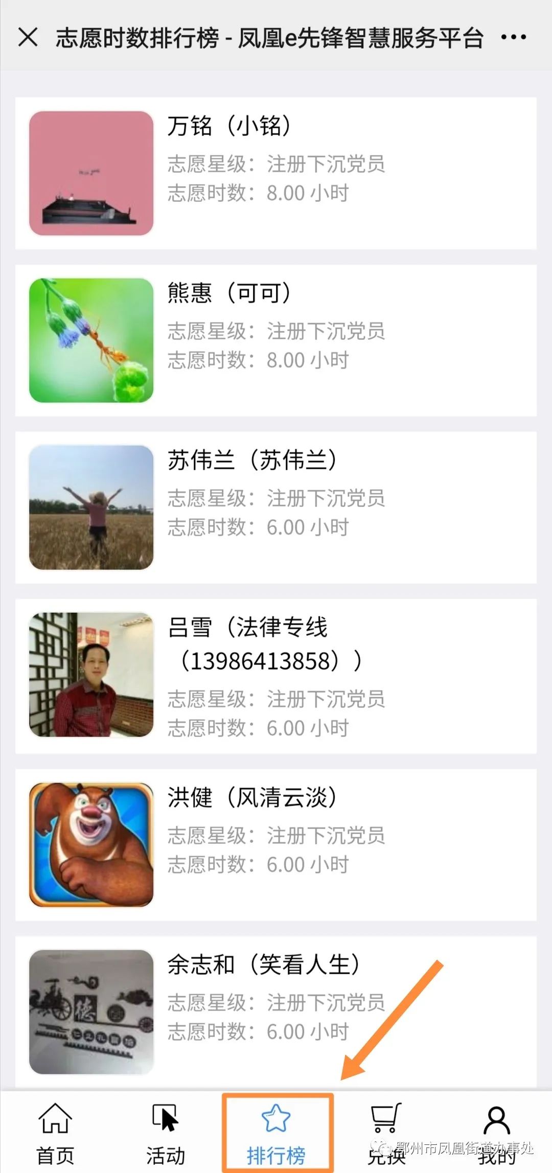 点击自己想参加的活动,报名签到,活动结束,产生时长,平台根据党员活动服务时间多少自动产生排名。