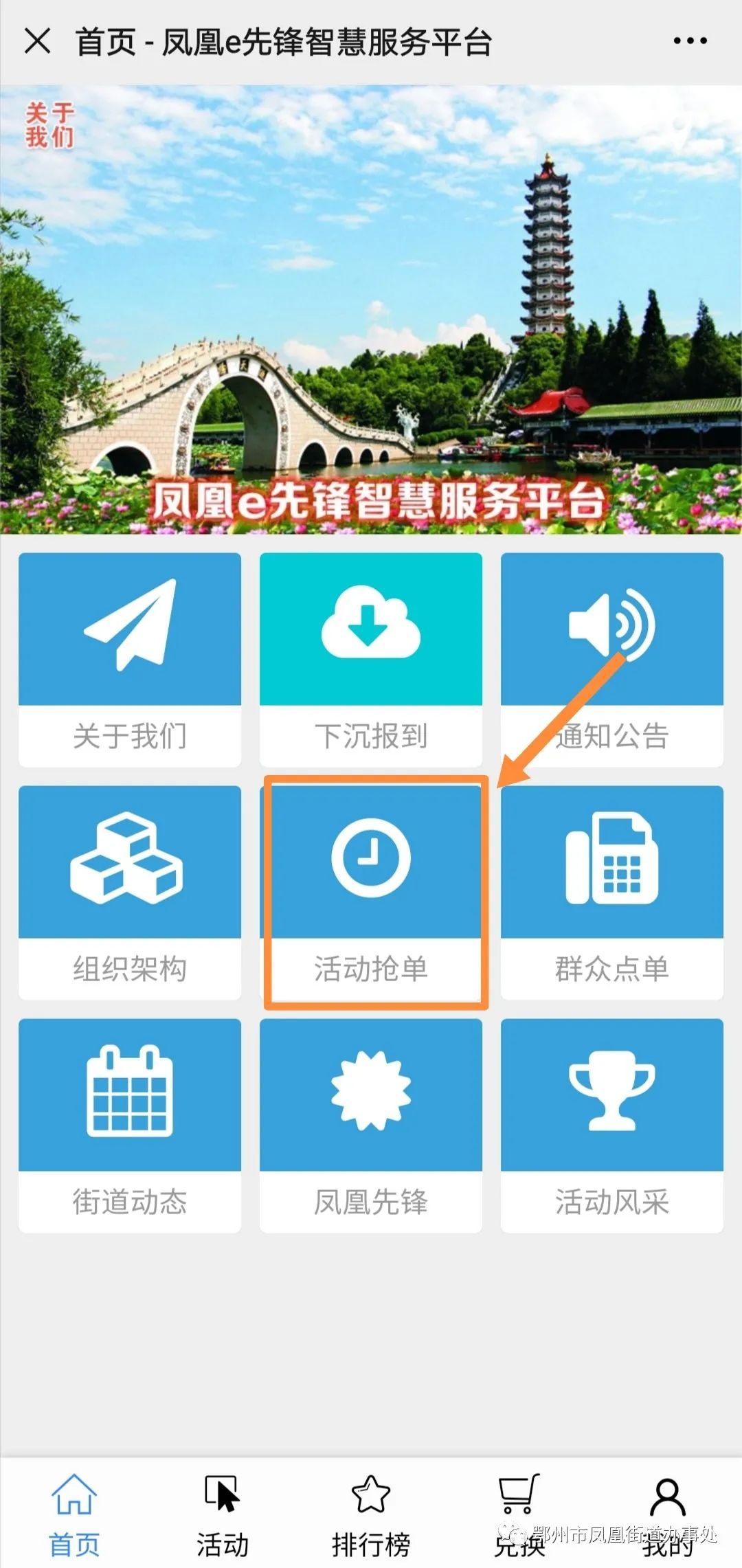 点击公众号底部菜单进入“凤凰e先锋”智慧服务平台.