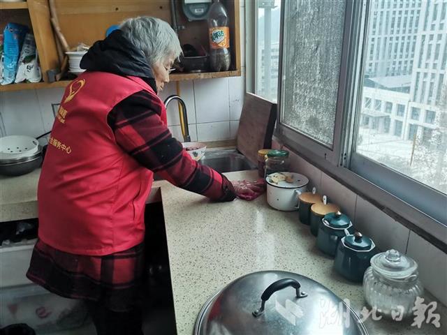 “年轻人工作忙,我身体还硬朗,邻里邻居的,能动得了就互相帮助。”吃完午饭,周学莲便来到熊润桃家,帮忙拖地、擦桌。