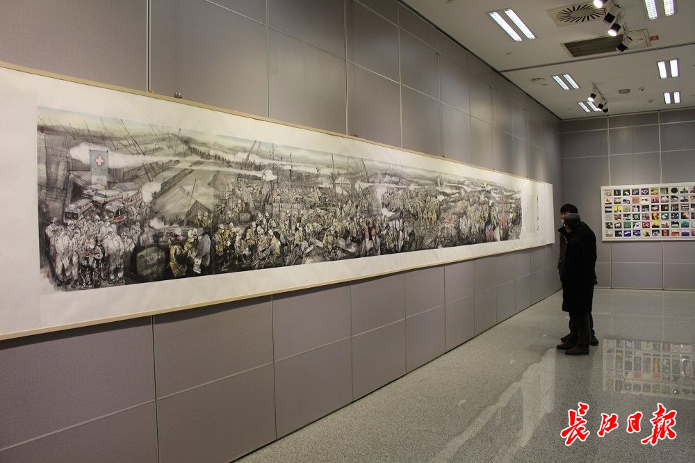 10米长卷中国画《鏖战火神山》。记者万建辉 摄