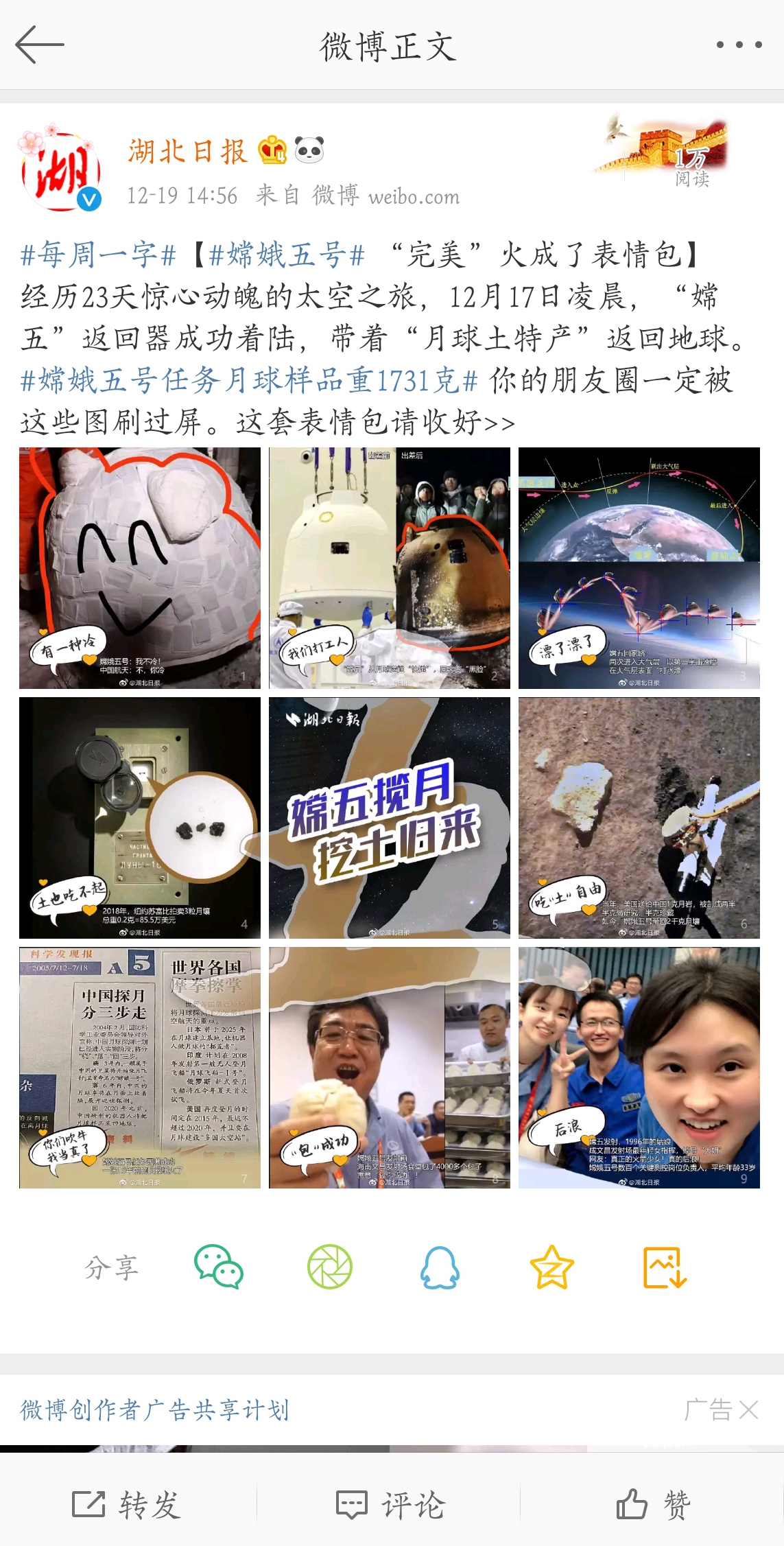 经历23天惊心动魄的太空之旅,12月17日凌晨,“嫦五”返回器成功着陆,带着“月球土特产”返回地球。你的朋友圈一定被这些图刷过屏。这套表情包请收好>>