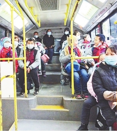 最初,这批小学生由校车接送。2013年,校车因故取消,100多名小学生开始在家长陪同下搭乘20路车。