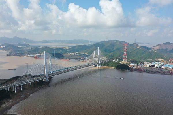 甬舟铁路的另一座大桥——桃夭门公铁两用大桥也是由中铁大桥院勘察设计的,这是一座主跨666米的混合梁斜拉桥,也是公路铁路在同一层桥面、采用三箱分离式主梁结构的大桥。“不同的是,为适应地形,中跨采用钢箱梁,边跨采用混凝土梁,该桥建成后将成为世界上首座三箱分离式混合梁斜拉桥”。