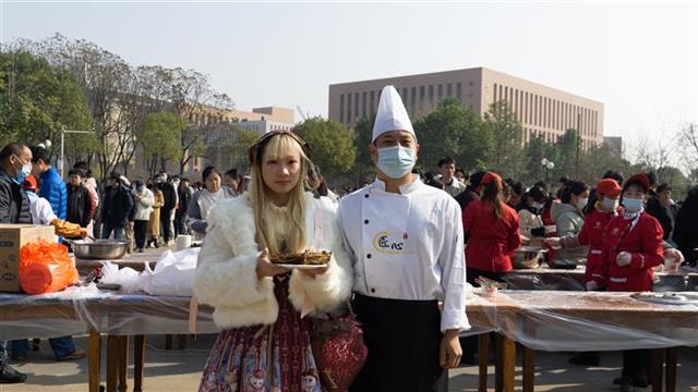 外国语翻译专业2001班学生陈雅儒一下课就赶到了食堂。她说,从进校就听说过学校的这个特色活动,今天终于能亲身体验到,“我很激动,我的学校也成为了‘别人家的学校’,我可以自豪地把照片发在朋友圈啦!”