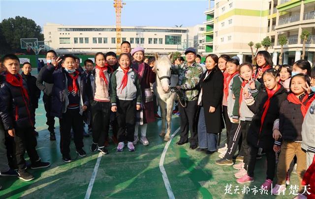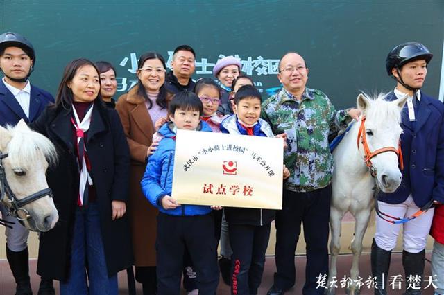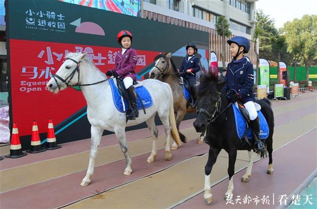 “学校有三名学生之前学习过马术,所以现场除了武汉商学院的大学生骑手外,还有我们的小骑手亮相。”校长马新银告诉记者,此次马术运动进校园属于公益性质,由政府出资,今年在武汉市26所小学试点,在全国尚属首次,该校有幸成为第一批试点学校。
