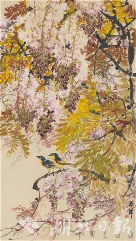 张振铎 紫藤双雀 1975年 中国画 105×59.5cm 中国美术馆藏