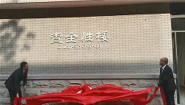 武大校长窦贤康(右)和校友刘金成为査全性楼揭幕(通讯员曹海钢摄)