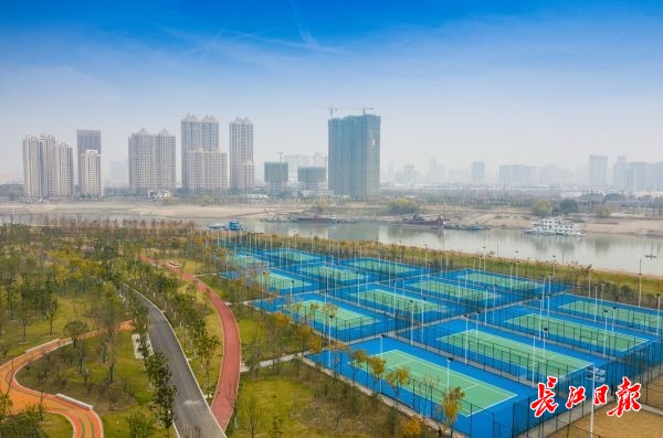 在汉江古田桥至长丰桥之间的汉阳江滩,记者看到这里新建了4片足球场,除了3片5人制球场,还有1片11人制标准足球场,全部采用天然草皮。预计明年开放,可为市民朋友们提供锻炼场所。