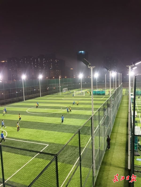 晚上,不少足球爱好者组队到玉龙路足球场踢球。杨付彪提供