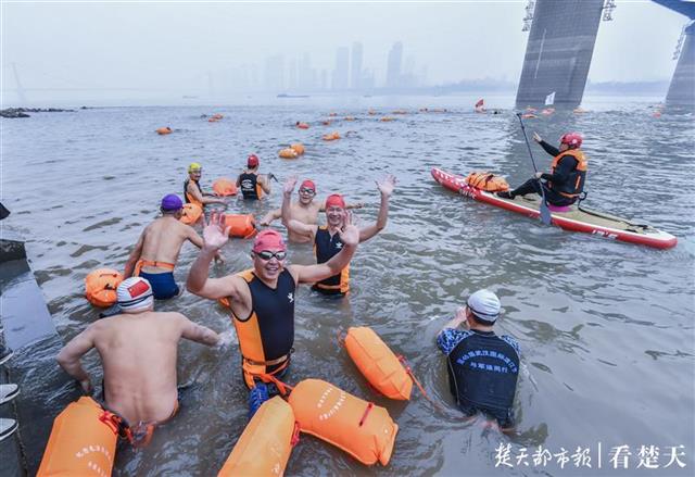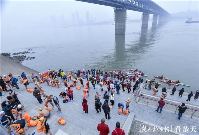 当日,渡江下水点测量水温为12.3度。20多位身穿桨板救生装备的武汉桨板运动爱好者,早早来到江边待候,为冬渡长江的游泳健儿保驾护航。10点,冬渡长江的队员佩戴救生浮球,陆续下水出发,绝大多数队员成功地横渡了长江。