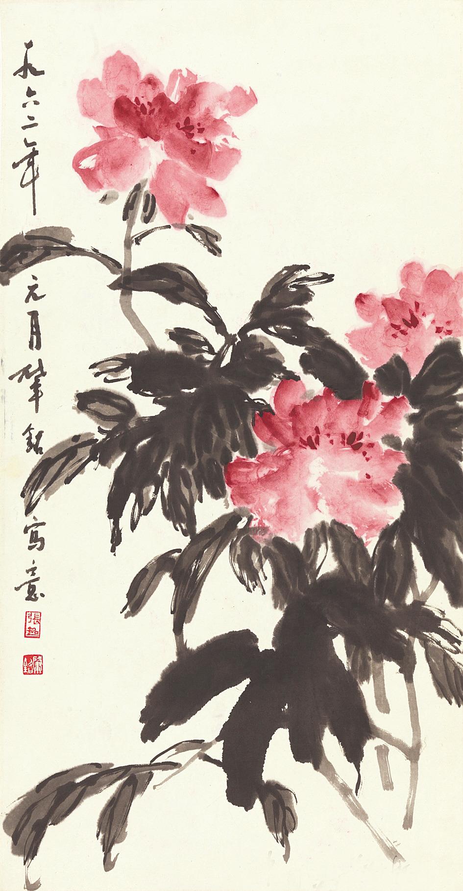 张肇铭 芍药 1962年 中国画 69.8×36.4cm