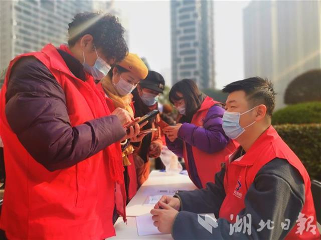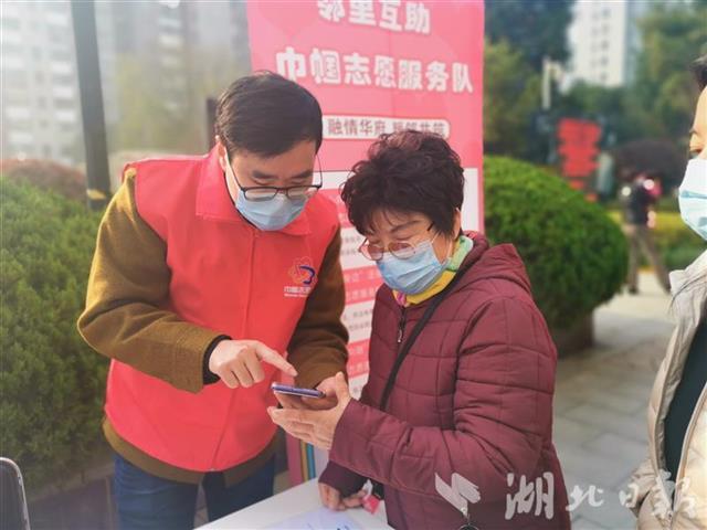 12月27日上午,在武汉市武昌区积玉桥街道融侨华府小区,下沉党员刘先生一边询问现场工作人员,一边扫码加入。