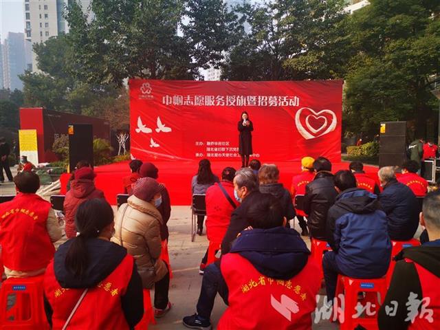 当天,由融侨华府社区、湖北省妇联下沉党员工作队主办,湖北爱心天使社会工作服务中心承办的“巾帼志愿服务授旗暨招募活动”在这里举行。近百名居民分别加入“红色宣讲巾帼志愿服务队”“家庭教育志愿服务队”“邻里互助巾帼志愿服务队”。