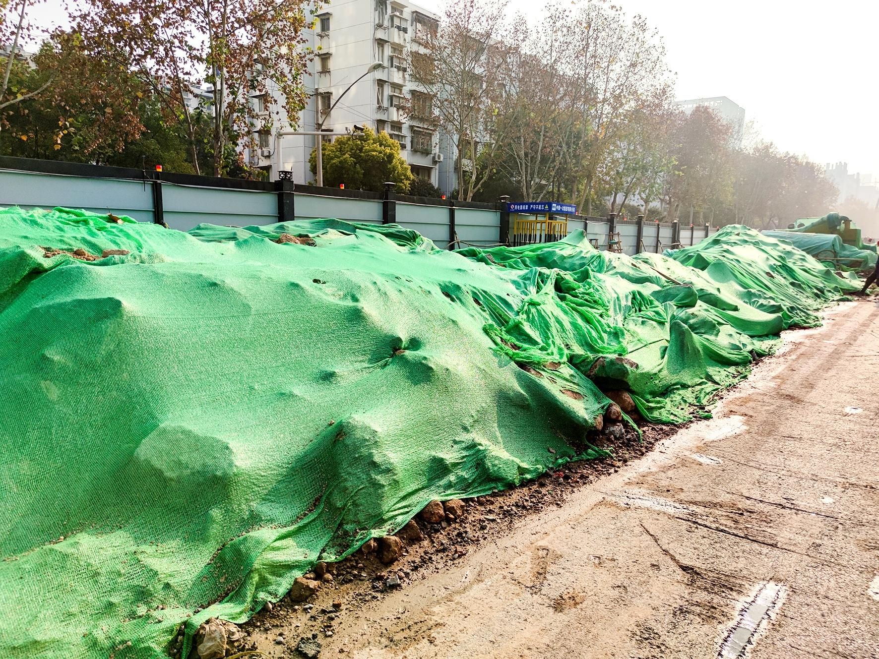 友谊大道快速化改造工程工地内,裸土覆盖了防尘网