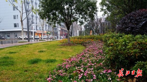 洪山区结合武汉火车站周边白云路、青菱立交、白沙洲大市场门口等重要点位的花境等景观,完成了时令花卉布置。