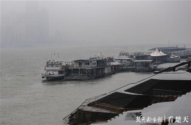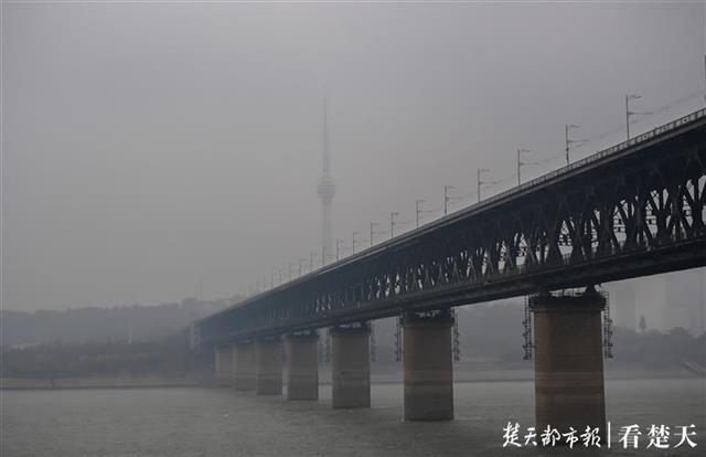 突然降温,使江城蒙上了一层雾色,长江江面烟波浩渺,蔚为壮观,放眼望去,远处的高层建筑若隐若现,近处的过往船只和码头在雾色中格外亮眼,橘红色的鹦鹉洲长江大桥似一根飘带装饰着长江,雄伟的长江大桥在寒风和雨雪中刚劲挺拔,仿佛把整个江城扮靓成了人间仙境,似一幅幅水墨画卷。