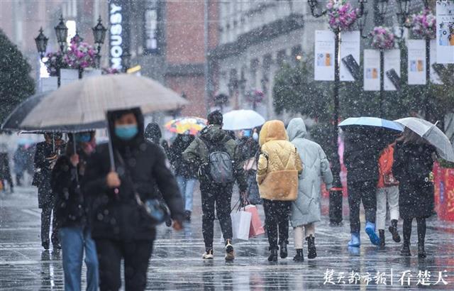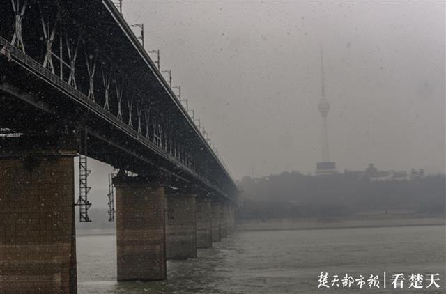 12月29日,受冷空气入侵的影响,武汉一夜之间气温聚降,天空中飘起了雪花。
