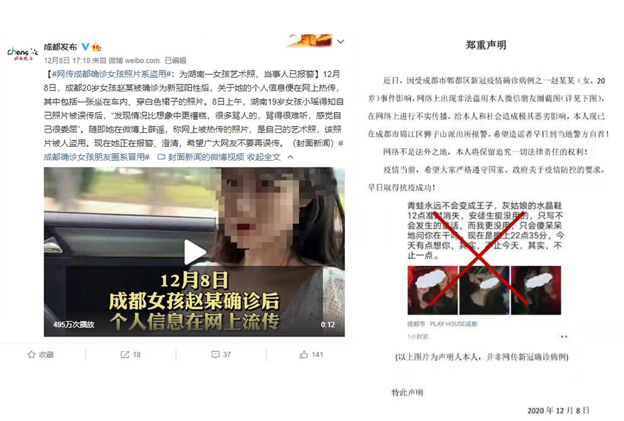 真相:2020年12月8日,成都新冠肺炎确诊者行动轨迹对外公布,关于20岁感染者赵某的个人信息便在网上热传。其中包括一张坐在车内、穿白裙子的照片,以及朋友圈截图。后经当事人澄清,照片及朋友圈均系冒用,并非确诊者本人。