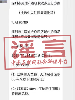真相:2020年12月1日下午,深圳市税务局对“房地产税开征”传闻进行了紧急辟谣,称网传消息纯属谣言,对于蓄意编造、发布、传播有关虚假信息、扰乱社会秩序的行为,将提请有关部门依法查处。