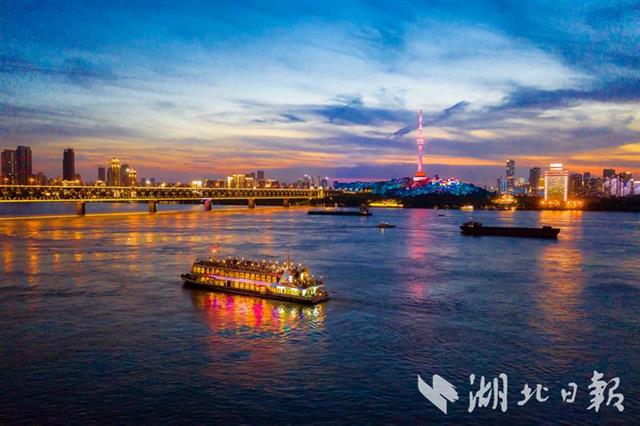 8月12日傍晚,“黄鹤楼号”游船在长江武汉段航行。当日,因长江汛情停航的武汉两江游览游船复航。