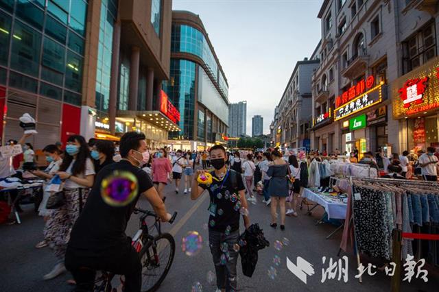 6月6日,武汉市江汉路步行街,市民、商贩络绎不绝,一派热闹景象。