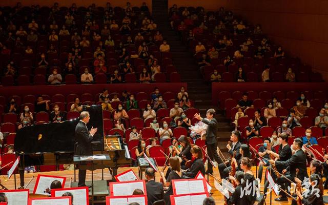 9月5日晚,武汉琴台音乐厅,青年钢琴演奏家元杰(右)与武汉爱乐乐团携手,为观众带来贝多芬《第一钢琴协奏曲》。当晚,第十届武汉爱乐乐团国际钢琴巡礼——纪念贝多芬诞辰250周年特辑在琴台音乐厅拉开帷幕。这也是疫后英雄城市武汉迎来的首场钢琴艺术盛宴。