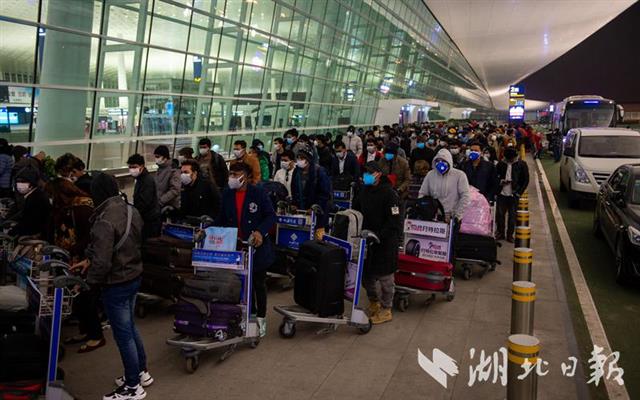 3月19日,荆州火车站,务工人员有序进站。当日,1600余名荆州籍务工人员先后乘两列赴粤专列踏上返岗之路,标志着湖北省赴省外务工人员返岗全面拉开序幕。