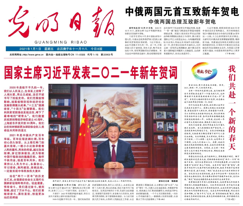“为生命摆渡,与无常对抗,有那么多个时刻,一个人就像一支队伍,也有那么多个瞬间,14亿人行动如一人。”光明日报在题为《我们共赴一个新的春天》的新年献词中这样写道。