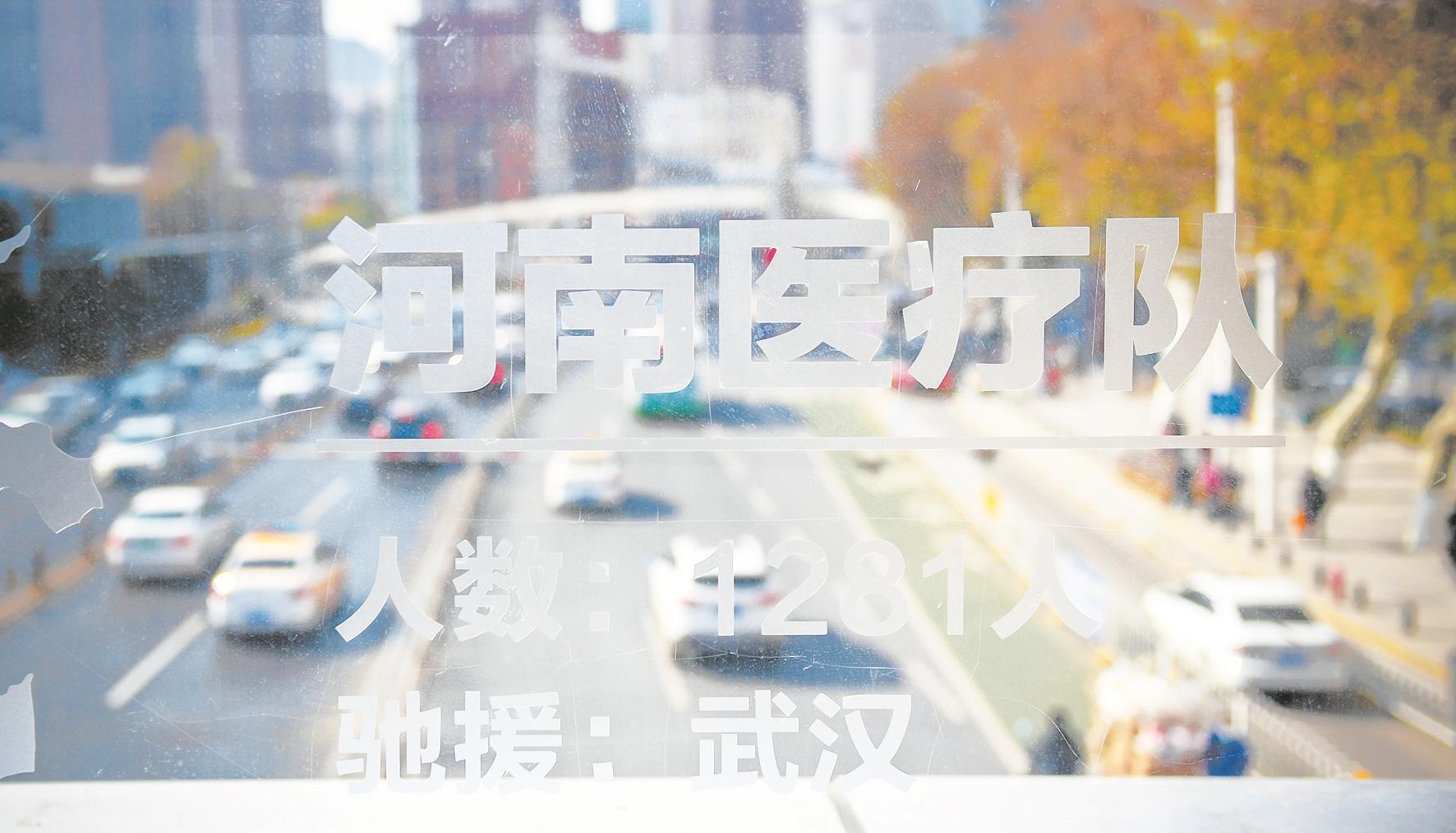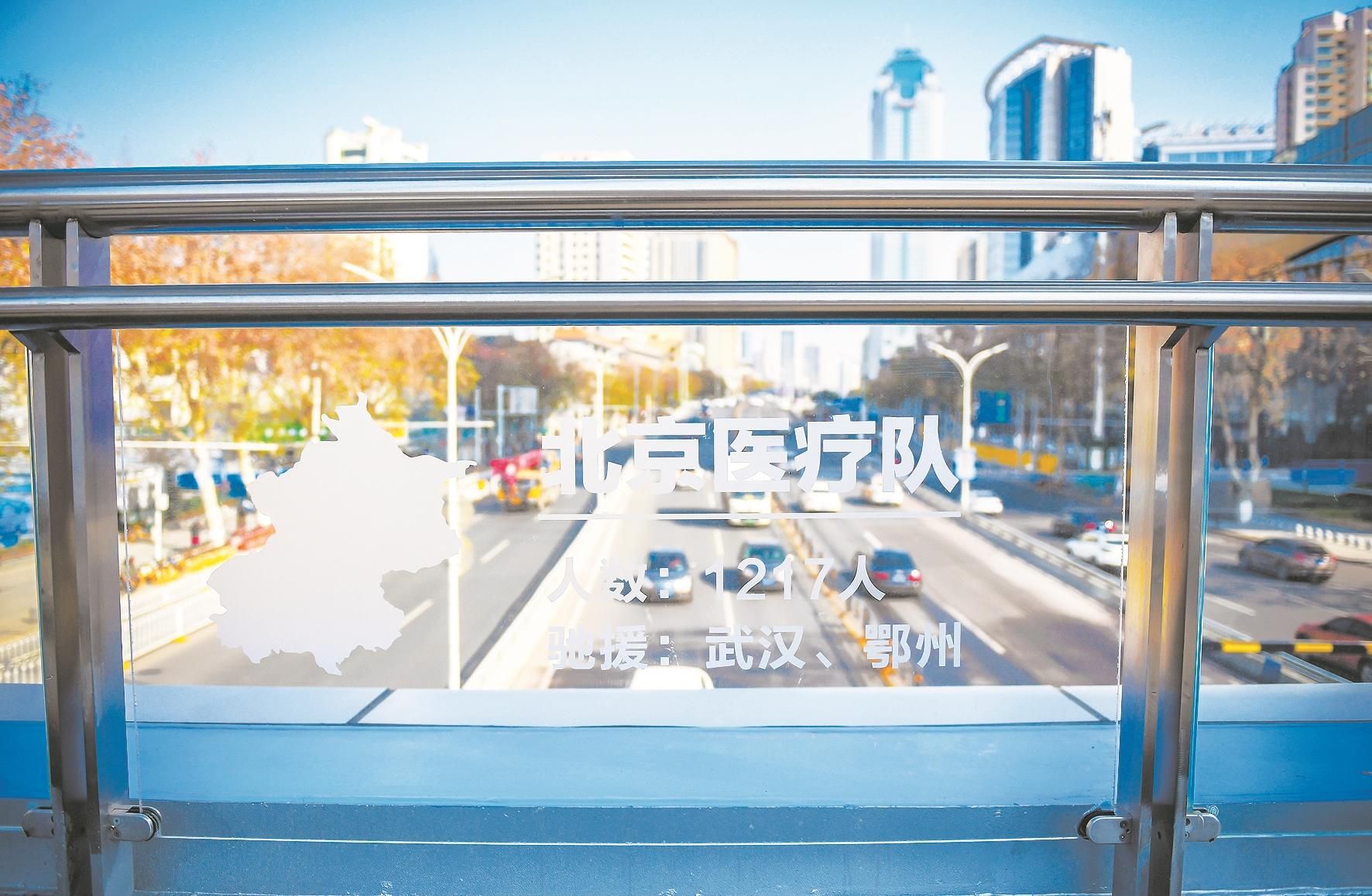 玻璃上印着援鄂医疗队名称