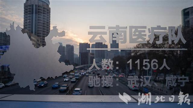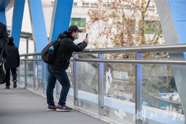 在天桥两侧的玻璃栏板上,印上了32支来自全国各省、直辖市、自治区及解放军援鄂抗疫医疗队的基本情况,包括各支医疗队的名称、人员数量、所属省份行政区划图和解放军“八一”标志。