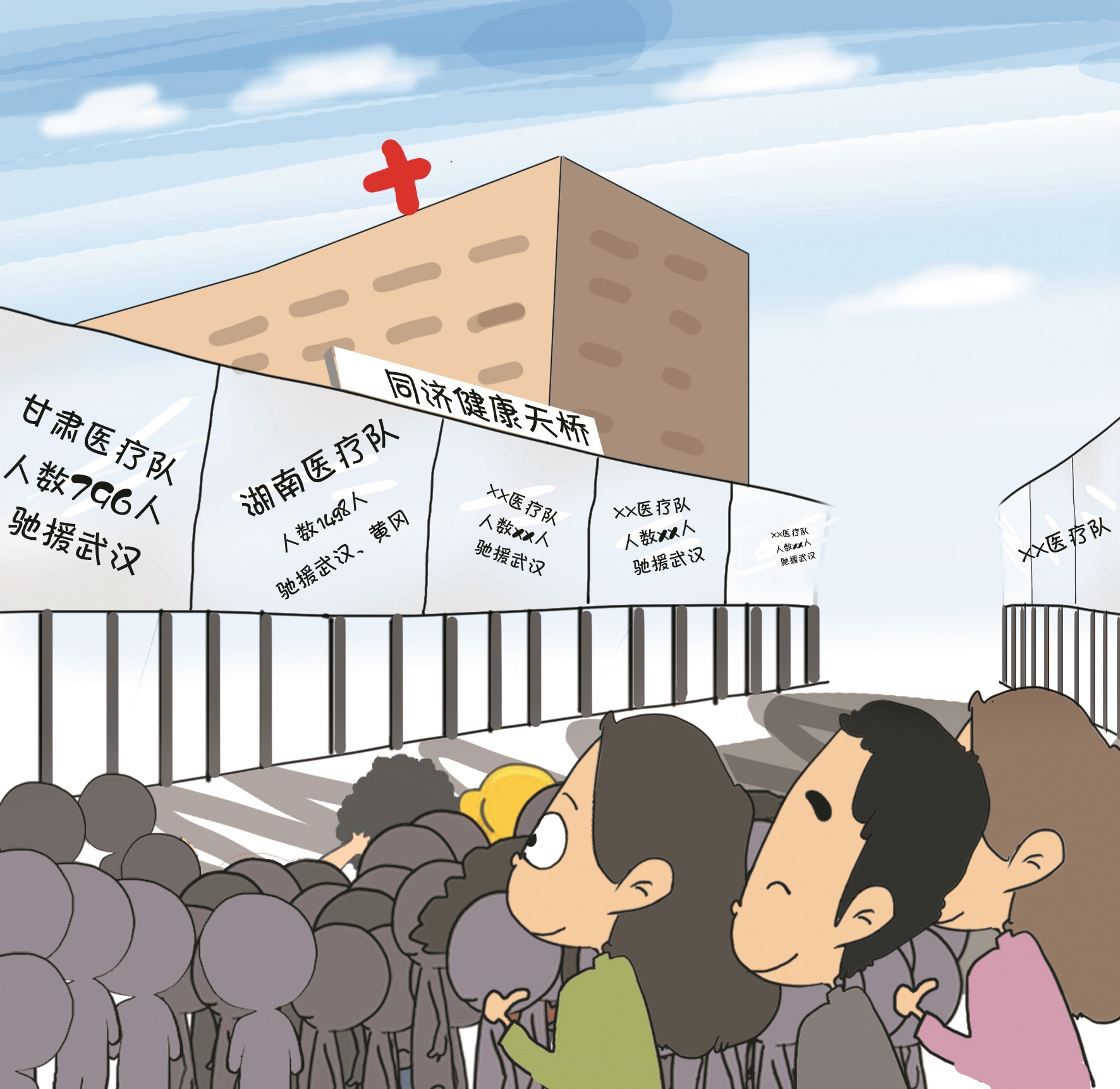 天府评论:新年之际,武汉将援鄂医疗队名称刻在天桥上,彰显了武汉人的感恩之心。