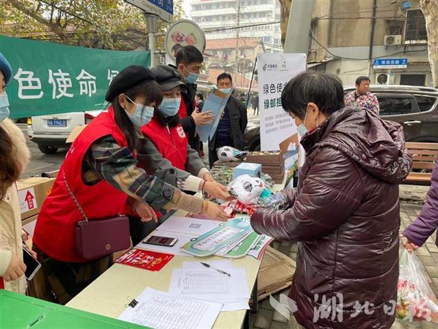湖北邮政进长春街社区宣传绿色邮政,开展废弃物换绿色植物活动