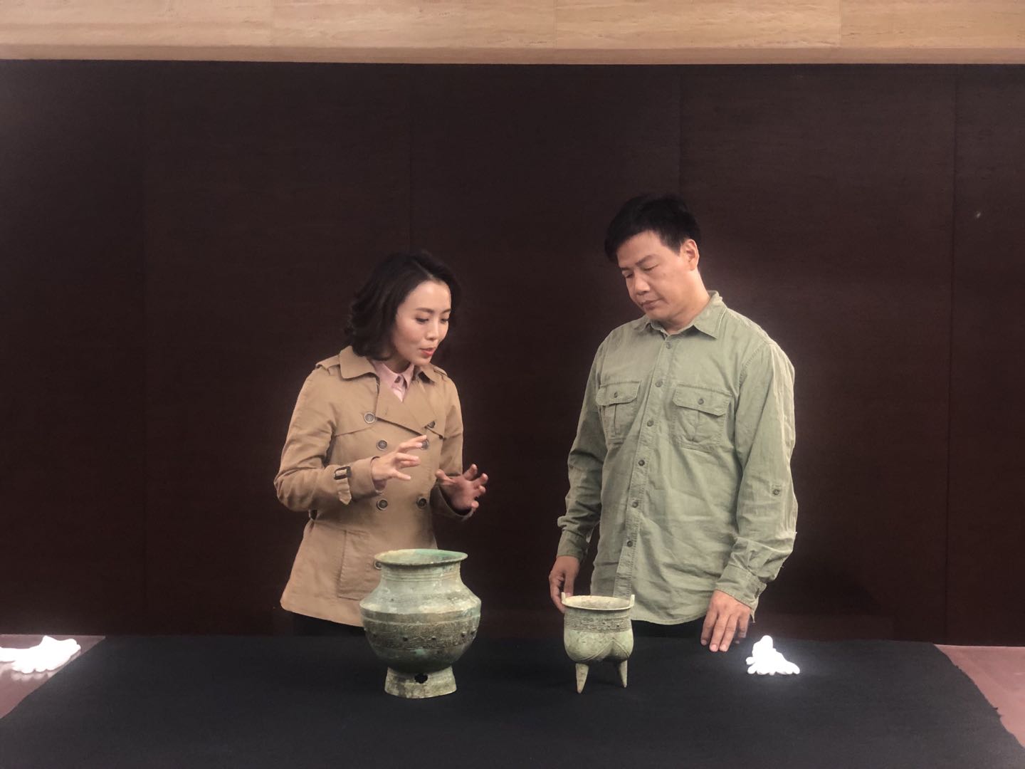 盘龙城遗址博物院考古研究部副主任廖航介绍,央视这次来盘龙城遗址博物院,拍摄了《江汉泱泱 商邑煌煌—盘龙城遗址陈列》的3个展厅、宫城复原区和城墙、盘龙城遗址考古发掘工地这3个点位。
