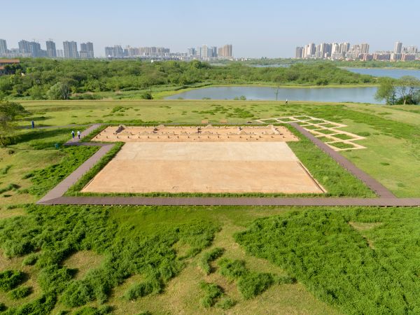 盘龙城商朝宫殿遗址复原展示区。